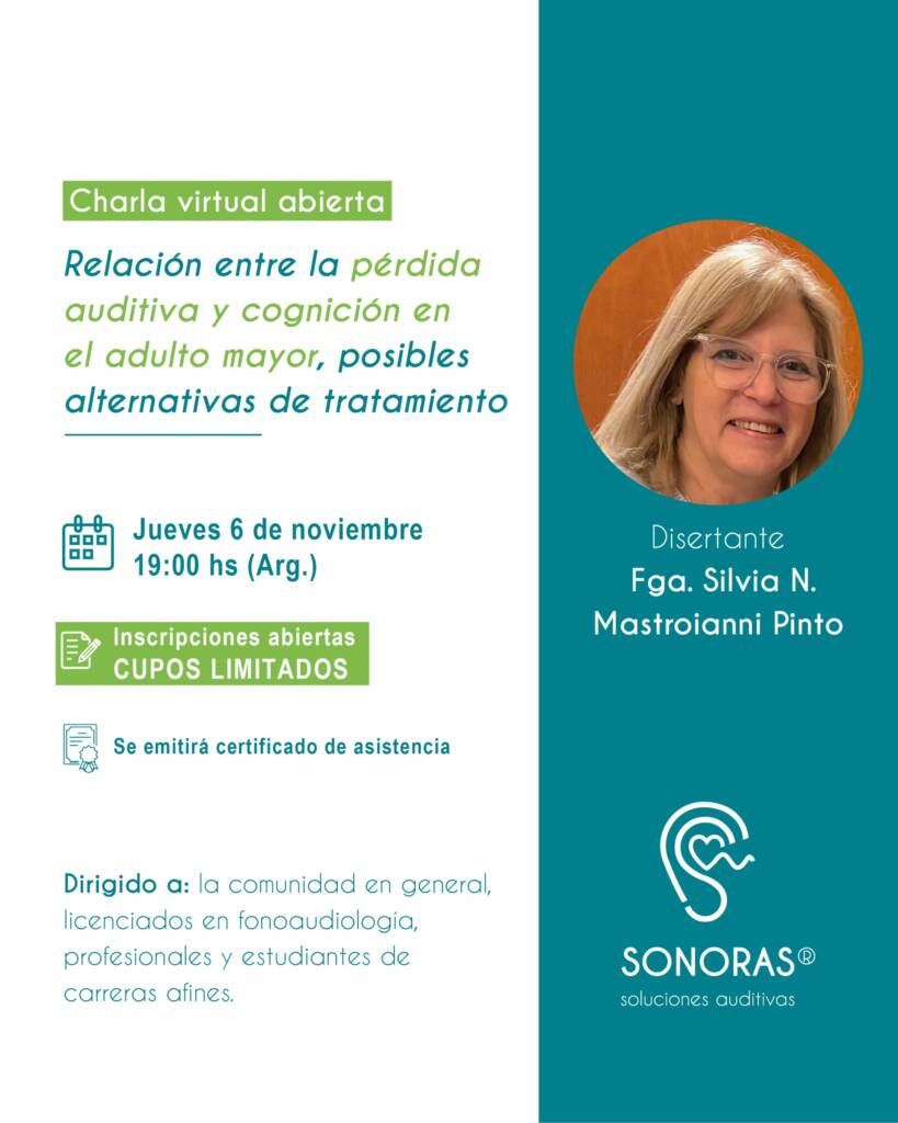 Sonoras – soluciones auditivas invita a la comunidad en general a participar de una charla abierta a cargo de la Fga. Silvia Mastroianni Pinto.